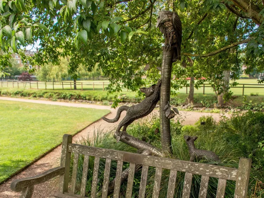 Sculpted stainless steel railings at 84 Worral Rd, Bristol, featuring dragonflies, beetles, snails, vines, and maintenance-free style.