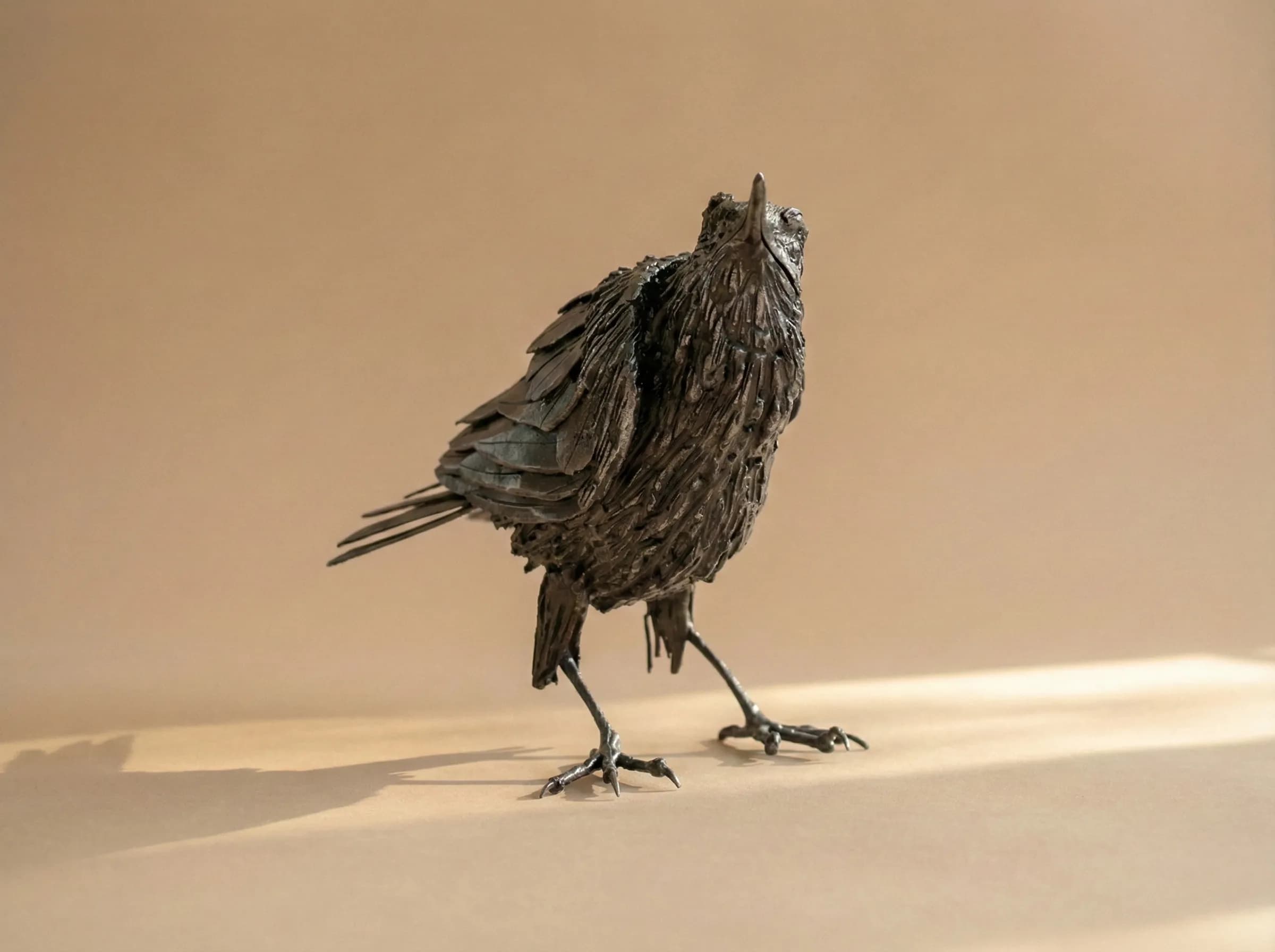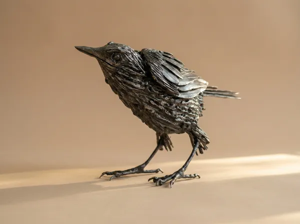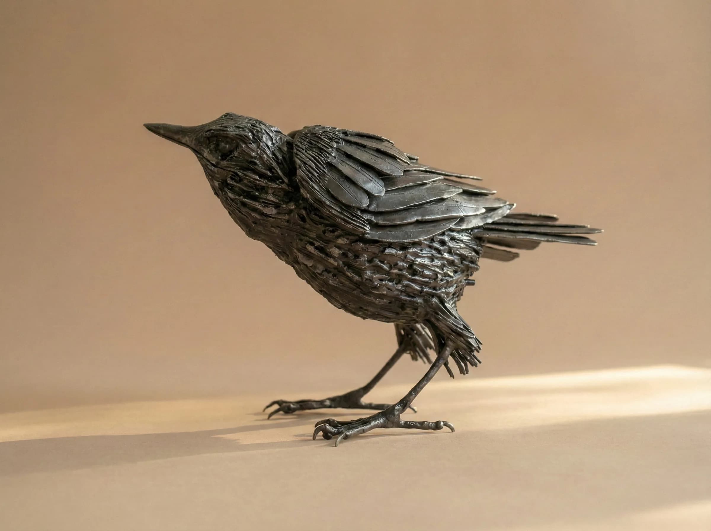 “Sculpture of a Common Blackbird. Features a textured, bead-welded body and smooth layered wings to capture the bird's iconic silhouette.”
