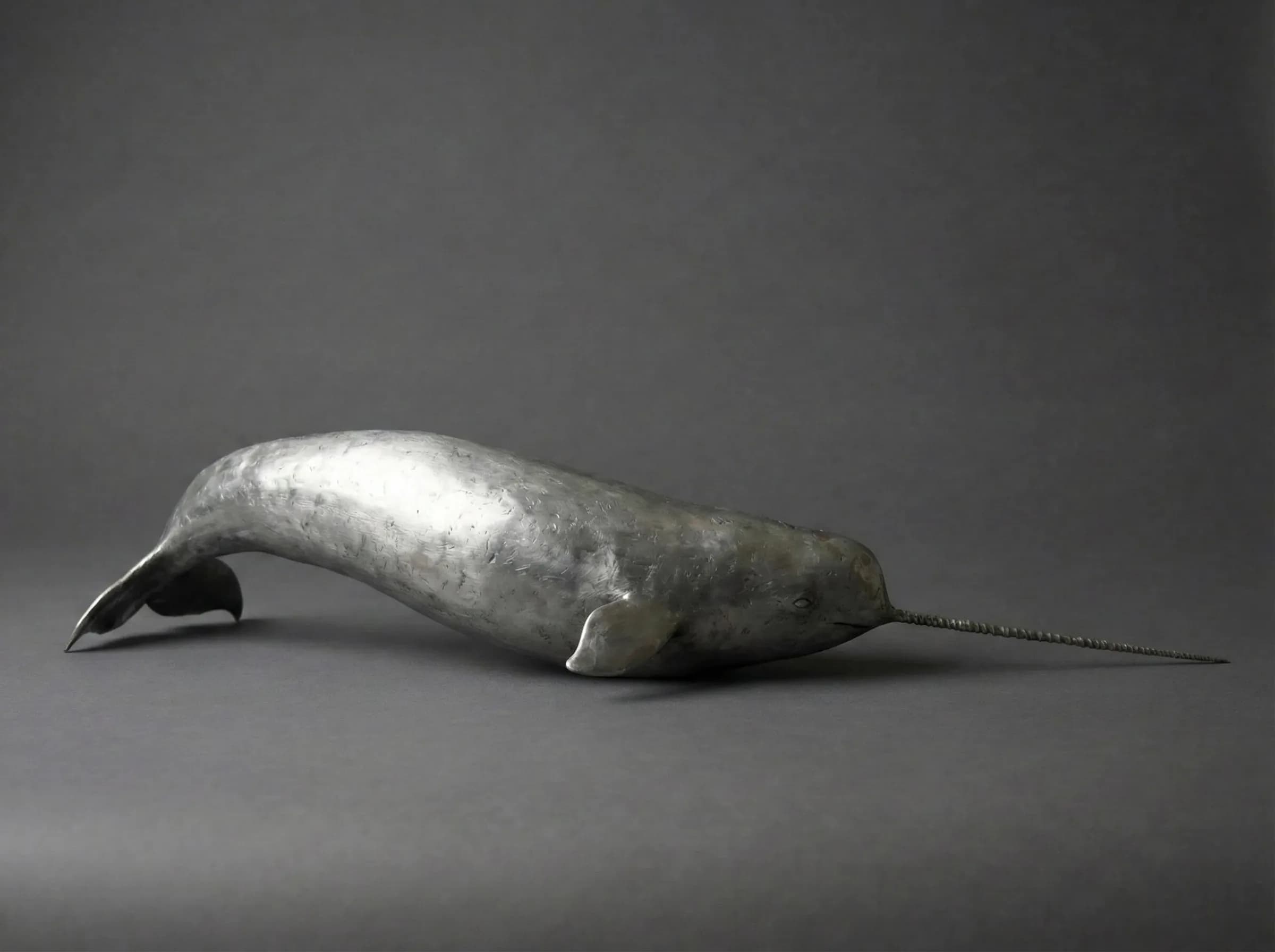 Commissioned for the private collection of renowned Scottish wildlife cameraman and polar expert Doug Allan OBE, this sculpture captures the sleek, ghostly presence of the Arctic's most mythical inhabitant: the Narwhal (Monodon monoceros).