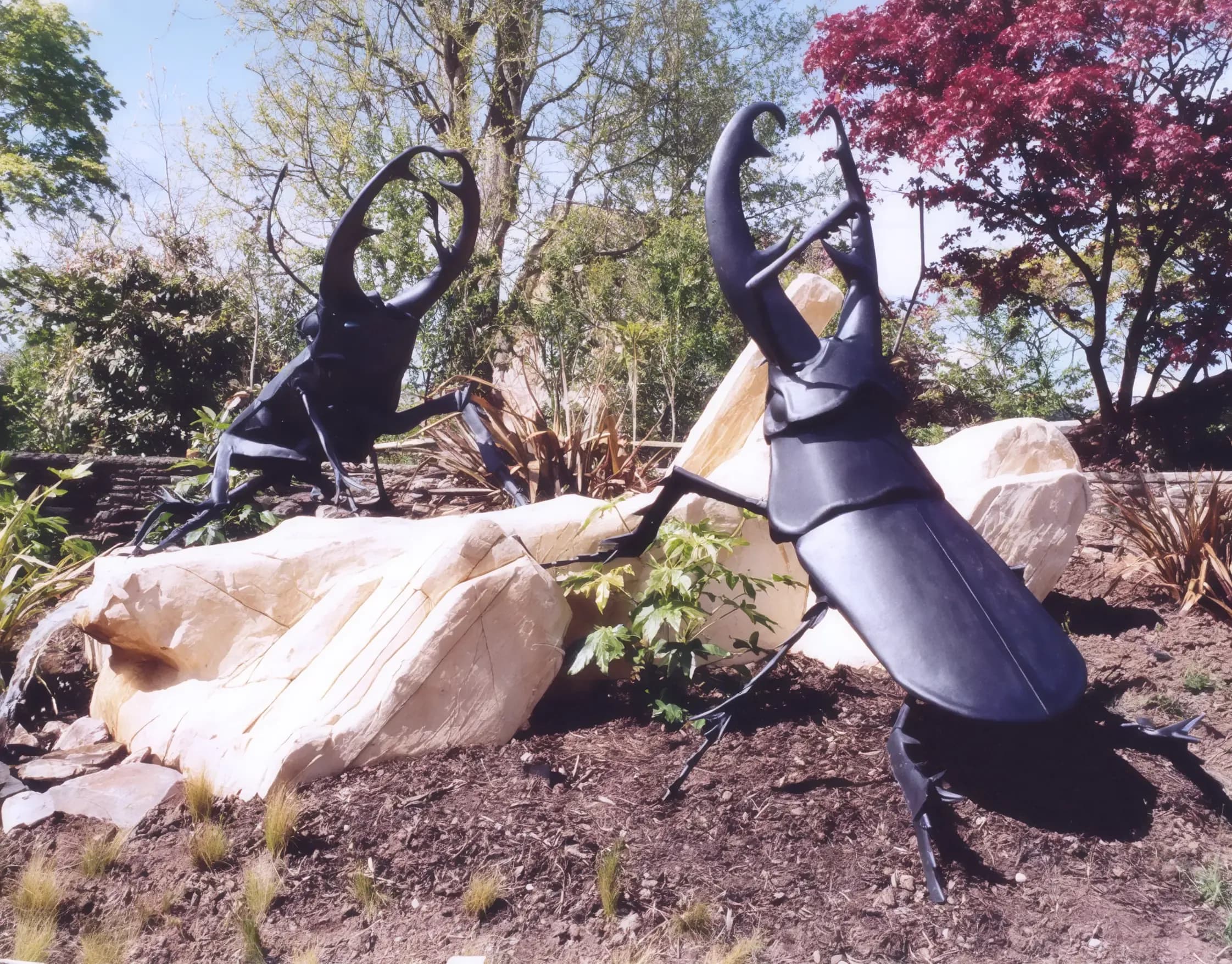 “Hand-shaped steel stag beetle sculptures for Bristol Zoo. A matte black, weather-resistant installation celebrating Britain’s iconic beetle species.”