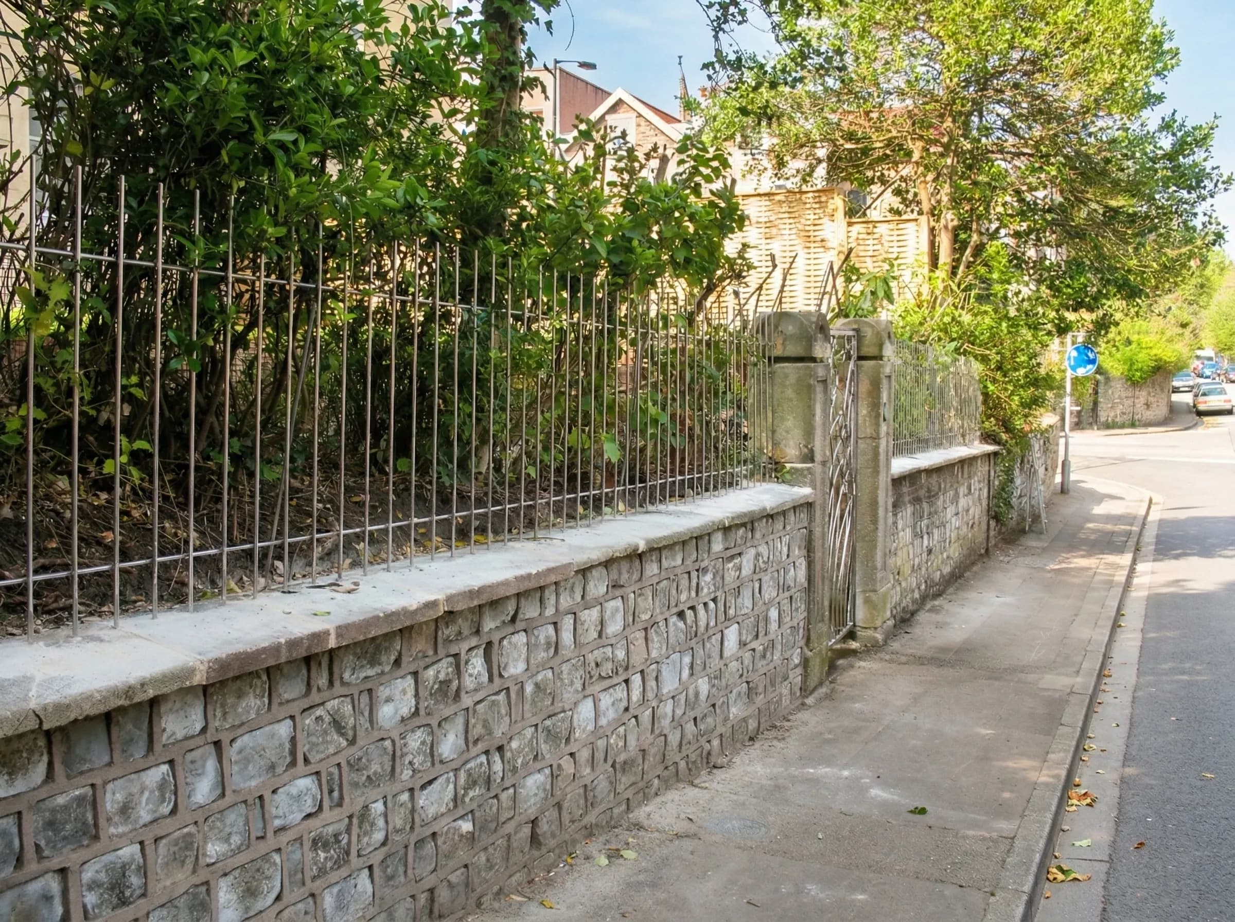 By reducing the familiar plant to its essential shapes, the design remains a quiet, subtle reference rather than a literal interpretation. The flowing lines of the gate provide a striking visual contrast to the rigid, straight vertical bars of the adjacent boundary railings. It successfully adds a small moment of softness and character to the everyday streetscape without overwhelming its traditional stone setting.