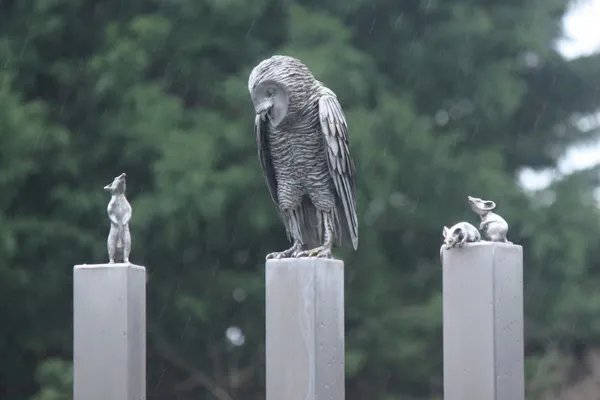 Commissioned for the opening of the Waitrose Botley Road Oxford branch in 2015, this installation serves as a historical marker for the site. The artwork consists of seven stainless steel columns, crowned by a life-sized Barn Owl (Tyto alba) and three Field Mice, together with the seven tything posts, represent the shared community spirit of a food store - or tythe barn - creating a skyline silhouette of the Oxfordshire countryside.