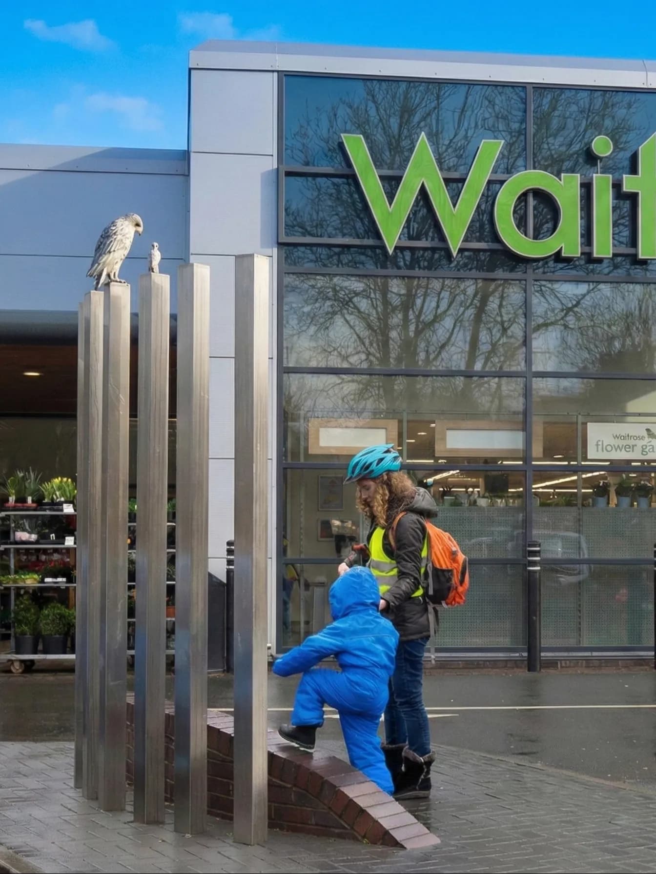 “Waitrose Botley Road featuring a stainless steel Barn Owl and Mice. The work honours the site's history as a medieval "tything."”