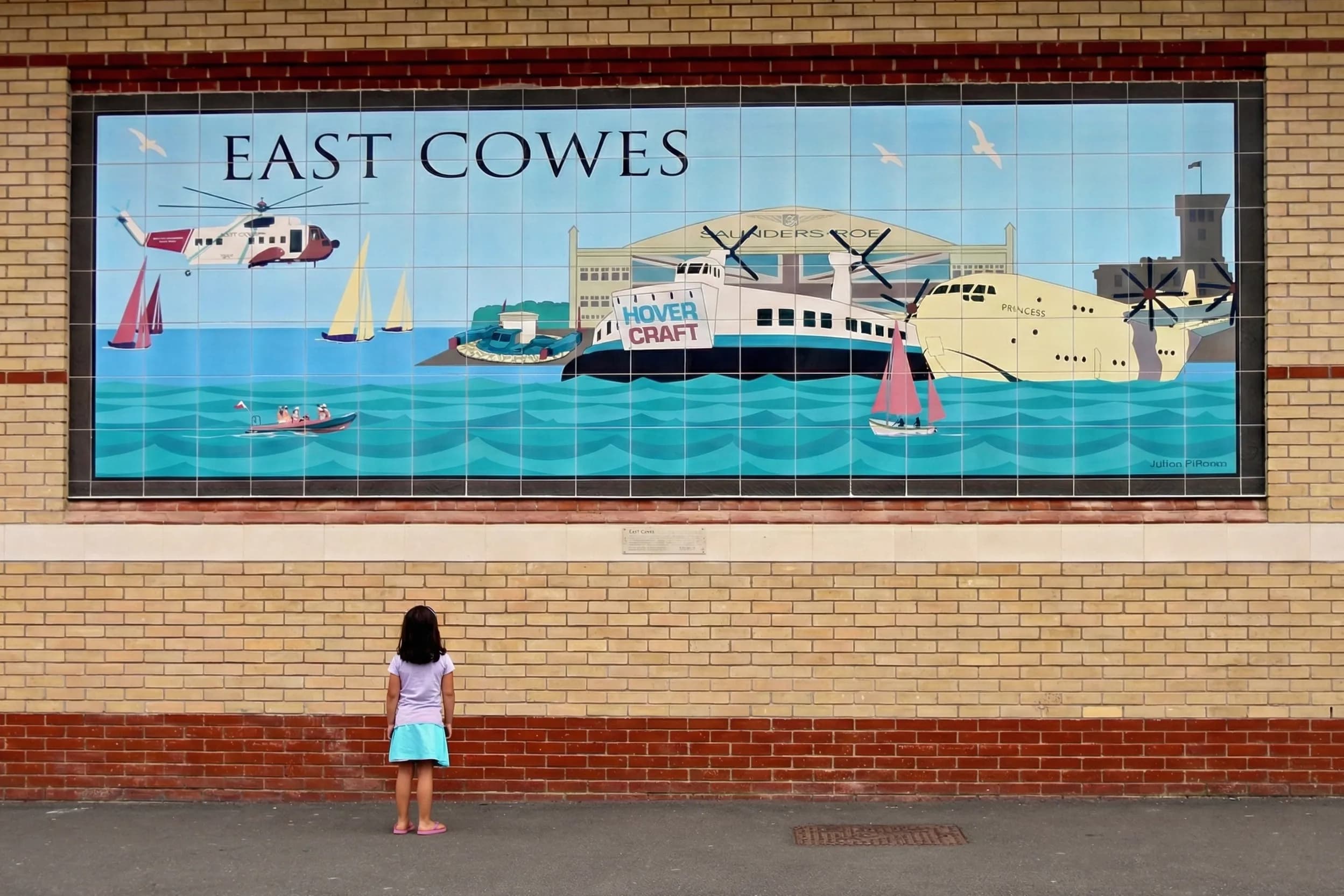 “25ft murals at Waitrose East Cowes, Isle of Wight. Celebrating the history of Saunders-Roe, the SR.N1 Hovercraft, and the Princess Flying Boat.”